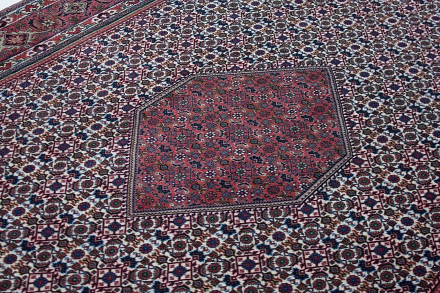 Die Knüpfereien der westpersischen Stadt Bidschar im Bezirk Gerus erzeugen eine besondere Teppichart, die oft von brettartiger Steifheit ist. Diese lässt sich durch ihre dicke und harte Struktur von allen anderen Teppichen leicht unterscheiden. Obwohl die Bidschars wollenes Grundgewebe haben und mit türkischen Knoten geknüpft sind, die normalerweise zur besten Struckturbildung führen, ist ihre Beschaffenheit doch unausgeglichen. Der hohe, glatt geschorene Flor besteht sonst aus vorzüglicher glänzender Wolle von besonderer Haltbarkeit. Die Muster zeigen vornehmlich etwas eckig gezeichnete Medaillongliederung auf kleinteilig durchgemustertem oder auf einfarbig rotem Grund. Es gibt auch aus Ranken bestehende Rautenmusterung des Feldes, die mit Palmetten und Vasen gefült ist. Medaillons und Ecken sind mit Arabeskblüten, der Grund mit Herati-Motiven gemustert. Etwas seltener kommt ein fortlaufendes Rapportmuster aus größeren floralen Motiven vor. Die Borte enthällt eckige Wellenranken mit Palmetten, Rosetten und Blättern. Der Grund ist kamelhaarfarben, ziegelrot oder dunkelblau, das Muster mäßig bunt. Bidschars werden in allen Größen angefertigt.