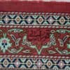 und Blattarabesken erinnern an die Muster der alten Seldschuken-Teppiche. In der Feldeinteilung sehen wir Trauerweiden, Blütenstauden, Botah-Motive und kleine Gebetnischen als Füllung. Die Längsbahnen der Steifeneinteilung enthalten. Wellenranken, die mit Botahs als Blüten besetzt sind. In der Borte werden Arabeskranken und Arabeskblätter mit Palmetten angereiht. Das Kolorit ist bunt aber weich und gedämpft. Dunkelblau und ein kräftiges violettes Rot wechseln plastisch mit den Pasteltönen von anderen Farben. Der Grund ist ziegelrot , naturweiß oder mittelblau.