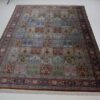 und Blattarabesken erinnern an die Muster der alten Seldschuken-Teppiche. In der Feldeinteilung sehen wir Trauerweiden, Blütenstauden, Botah-Motive und kleine Gebetnischen als Füllung. Die Längsbahnen der Steifeneinteilung enthalten. Wellenranken, die mit Botahs als Blüten besetzt sind. In der Borte werden Arabeskranken und Arabeskblätter mit Palmetten angereiht. Das Kolorit ist bunt aber weich und gedämpft. Dunkelblau und ein kräftiges violettes Rot wechseln plastisch mit den Pasteltönen von anderen Farben. Der Grund ist ziegelrot , naturweiß oder mittelblau.