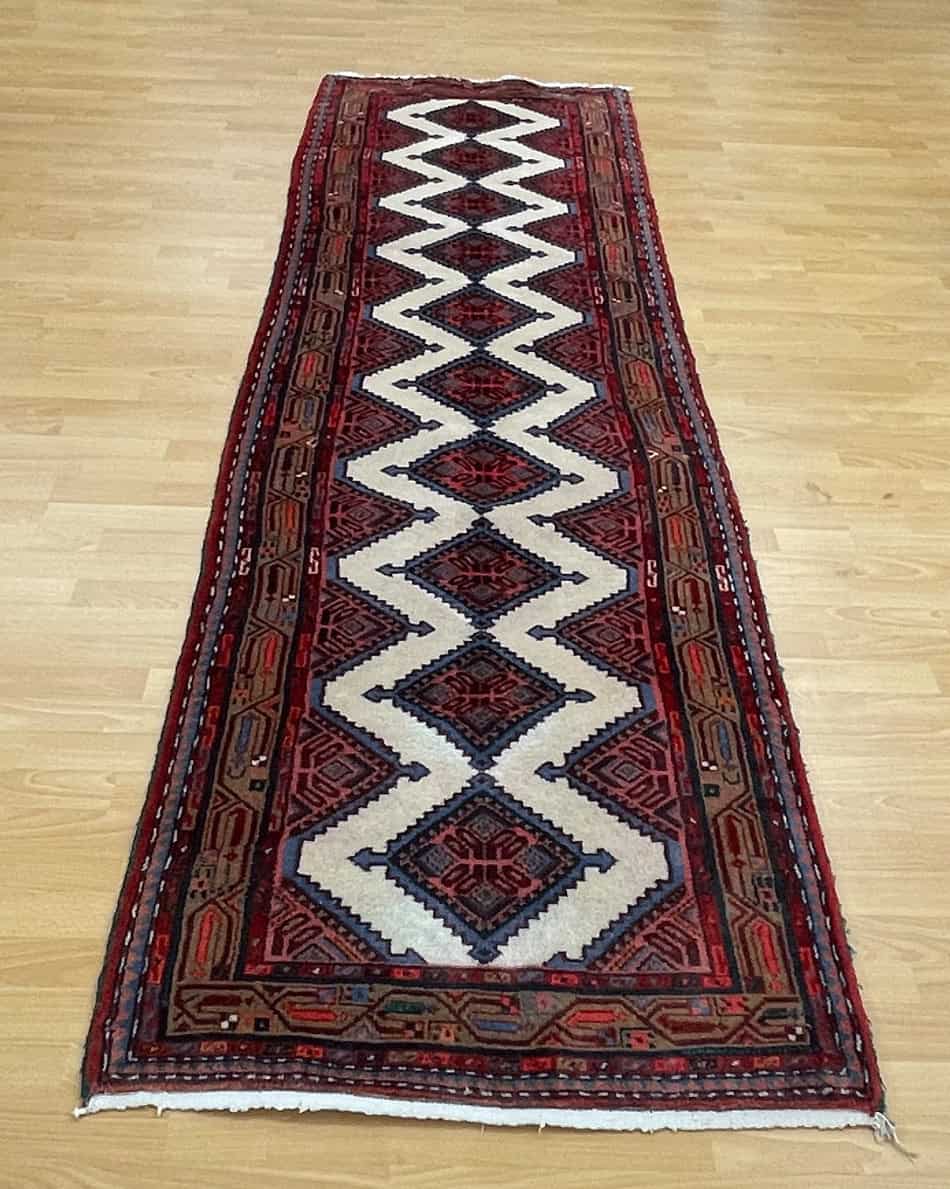 Viele der Brücken, Läufer und auch Teppiche sind nach der alten westpersischen Stadt benannt. Nur ein Teil dieser Erzeugnisse stammt jedoch direkt aus Hamadan. Die meisten kommen aus der weiteren Umgebung der Stadt. Es sind verschiedene, zumeist sehr feste Knüpfarbeiten der bäuerlichen und viehzüchtenden Bevölkerung des ausgedehnten Berglandes des Hamadan-Gebiets. Sie werden aus der kräftigen Wolle der Bergschafe geknüpft. Gelegentlich sind sie mit wollenem, vorwiegend aber mit baumwollenem Grundgewebe anzutreffen, und sie haben fast ohne Ausnahme einen ziemlich hohen, dichten Flor. Die Muster sind besonders mannigfaltig, denn man verwendet alle bekannten Motive. Sie werden zumeist in einem rautenförmig gegliederten Feld versetzt angereiht. Das Kolorit weist etwas derbscheckige Töne der Hauptfarben auf, wobei Blau und Rot vorherrschen. Ältere Hamadan-Teppiche haben das langgestreckte Kelei-Format. Das Feld ist gewöhnlich in hexagonförmig verlängerte Rauten