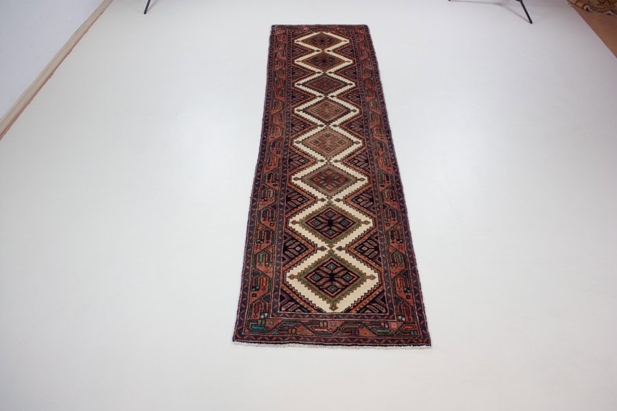 Viele der Brücken, Läufer und auch Teppiche sind nach der alten westpersischen Stadt benannt. Nur ein Teil dieser Erzeugnisse stammt jedoch direkt aus Hamadan. Die meisten kommen aus der weiteren Umgebung der Stadt. Es sind verschiedene, zumeist sehr feste Knüpfarbeiten der bäuerlichen und viehzüchtenden Bevölkerung des ausgedehnten Berglandes des Hamadan-Gebiets. Sie werden aus der kräftigen Wolle der Bergschafe geknüpft. Gelegentlich sind sie mit wollenem, vorwiegend aber mit baumwollenem Grundgewebe anzutreffen, und sie haben fast ohne Ausnahme einen ziemlich hohen, dichten Flor. Die Muster sind besonders mannigfaltig, denn man verwendet alle bekannten Motive. Sie werden zumeist in einem rautenförmig gegliederten Feld versetzt angereiht. Das Kolorit weist etwas derbscheckige Töne der Hauptfarben auf, wobei Blau und Rot vorherrschen. Ältere Hamadan-Teppiche haben das langgestreckte Kelei-Format. Das Feld ist gewöhnlich in hexagonförmig verlängerte Rauten