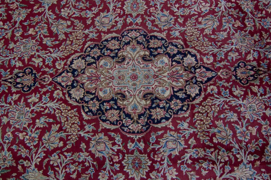 Das südostpersische Zentrum der Teppichkunst, die Stadt Kirman, hatte schon in der Seldschukenzeit Knüpfereie. Hier wurden ach die sogenannten Vasenteppiche der klassischen Periode erzeugt, deren Muster, das aus fortlaufenden Wellenranken gebildete Rautensysteme mit Füllmotiven, sich bis in dem 19. Jahrhundert noch ein Rautenmuster in altem Stil zeigen oder auch mit Spiralranken, Rosetten und Lanzetblättern in unendlich fortlaufendem Rapport gemustert sind, weisen die älteren Stücke aus dem 18. Jahrhundert vereinzelt Muster mit konzentrischer Medaillongliederung auf. Daneben hat man auch Rapportmuster aus kleinteilig angereihten Blütenornamenten verwendet.