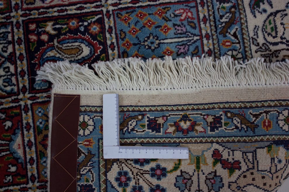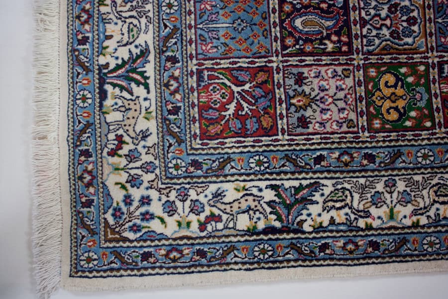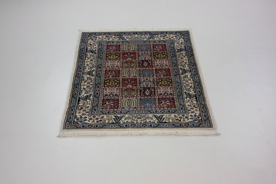 Die besten und schönsten Mescheder Teppiche werden als Moud bezeichnet. Sie zeichnen sich vorallem durch besonders feine Knüpfung, einen glatt geschorenen, dichten mittelhohen Flor sowie durch das sehr klar gezeichnete, reiche Medaillon- und Ranken-Blüten-Muster mit harmonischen Farben aus. Die Moud-Teppiche haben eine ausgesuchte, vorzügliche Knüpfwolle mit Glanz und eine feste aber biegsame Struktur. Das Grundgewebe besteht aus dünn gesponnenem Baumwollgarn. Die Knüpfungsdichte ereicht oft die 400.000 persischen Knoten pro Quadratmeter.