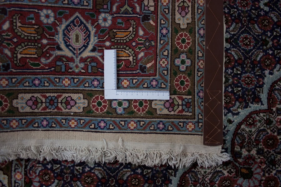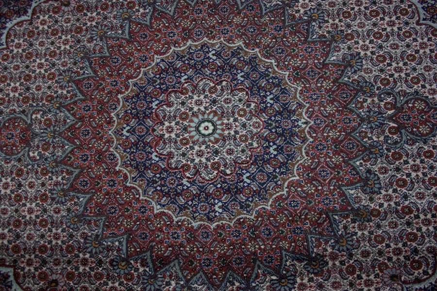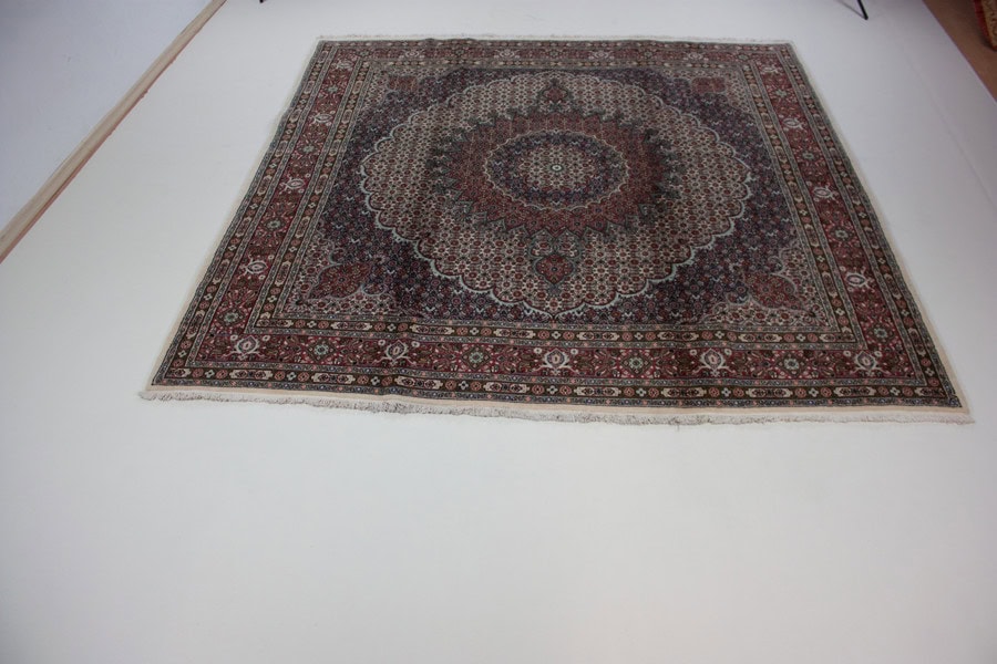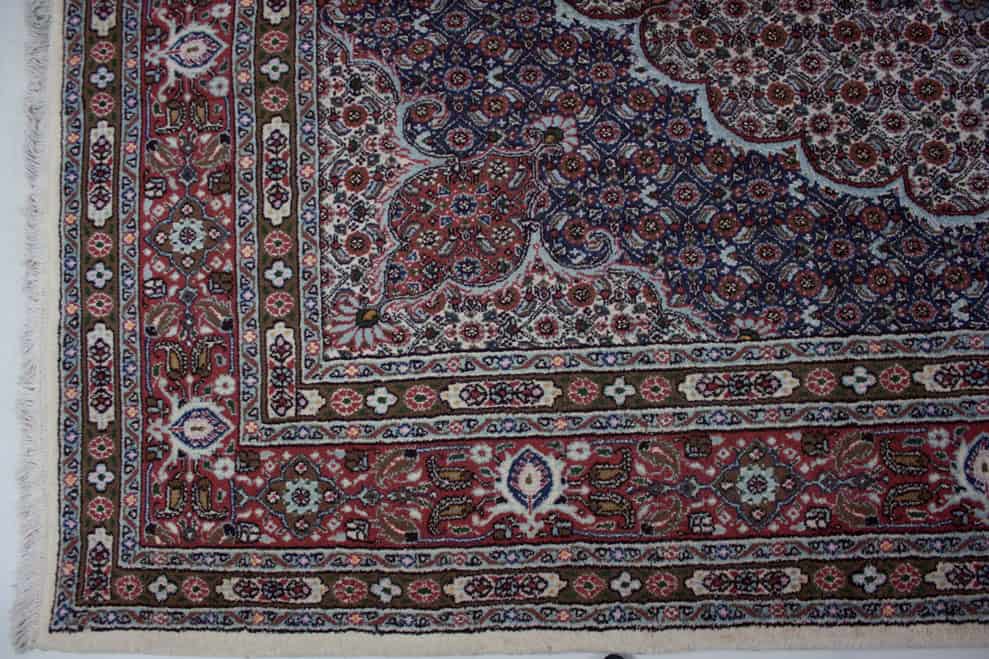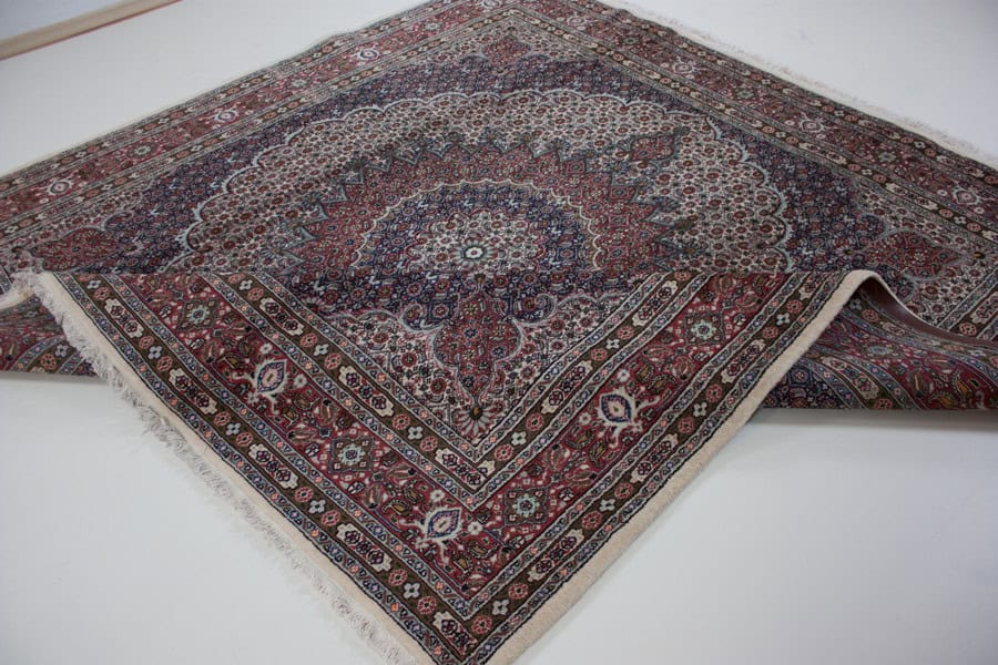Die besten und schönsten Mescheder Teppiche werden als Moud bezeichnet. Sie zeichnen sich vorallem durch besonders feine Knüpfung, einen glatt geschorenen, dichten mittelhohen Flor sowie durch das sehr klar gezeichnete, reiche Medaillon- und Ranken-Blüten-Muster mit harmonischen Farben aus. Die Moud-Teppiche haben eine ausgesuchte, vorzügliche Knüpfwolle mit Glanz und eine feste aber biegsame Struktur. Das Grundgewebe besteht aus dünn gesponnenem Baumwollgarn. Die Knüpfungsdichte ereicht oft die 400.000 persischen Knoten pro Quadratmeter.