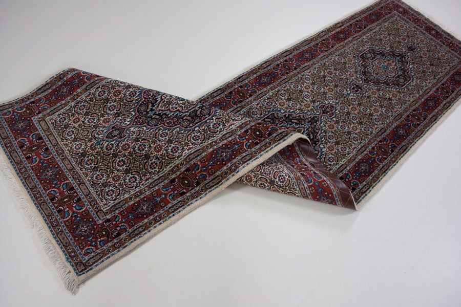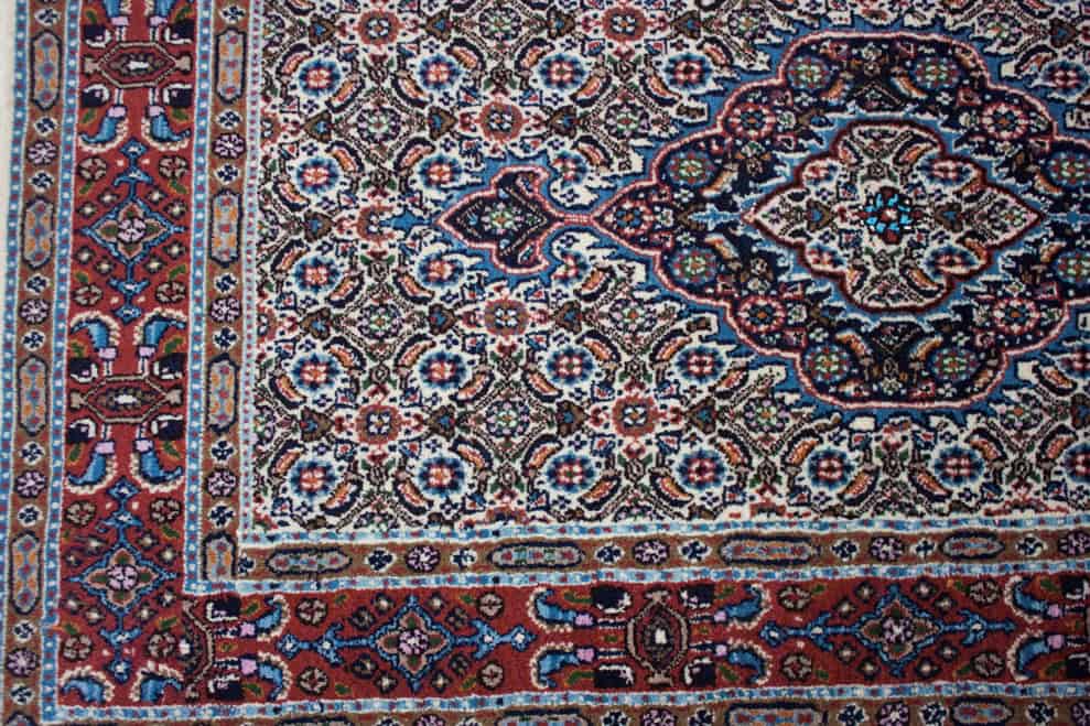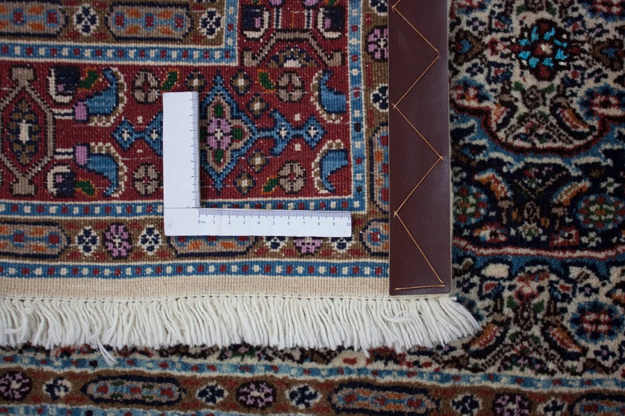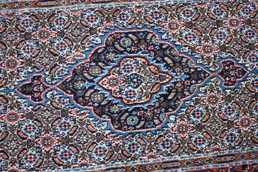 Die besten und schönsten Mescheder Teppiche werden als Moud bezeichnet. Sie zeichnen sich vorallem durch besonders feine Knüpfung, einen glatt geschorenen, dichten mittelhohen Flor sowie durch das sehr klar gezeichnete, reiche Medaillon- und Ranken-Blüten-Muster mit harmonischen Farben aus. Die Moud-Teppiche haben eine ausgesuchte, vorzügliche Knüpfwolle mit Glanz und eine feste aber biegsame Struktur. Das Grundgewebe besteht aus dünn gesponnenem Baumwollgarn. Die Knüpfungsdichte ereicht oft die 400.000 persischen Knoten pro Quadratmeter.