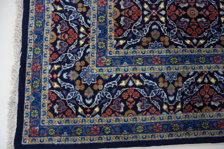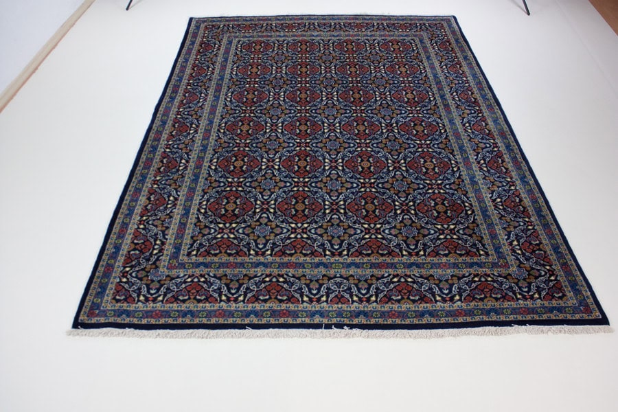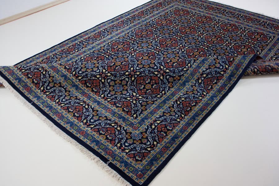 Die besten und schönsten Mescheder Teppiche werden als Moud bezeichnet. Sie zeichnen sich vorallem durch besonders feine Knüpfung, einen glatt geschorenen, dichten mittelhohen Flor sowie durch das sehr klar gezeichnete, reiche Medaillon- und Ranken-Blüten-Muster mit harmonischen Farben aus. Die Moud-Teppiche haben eine ausgesuchte, vorzügliche Knüpfwolle mit Glanz und eine feste aber biegsame Struktur. Das Grundgewebe besteht aus dünn gesponnenem Baumwollgarn. Die Knüpfungsdichte ereicht oft die 400.000 persischen Knoten pro Quadratmeter.