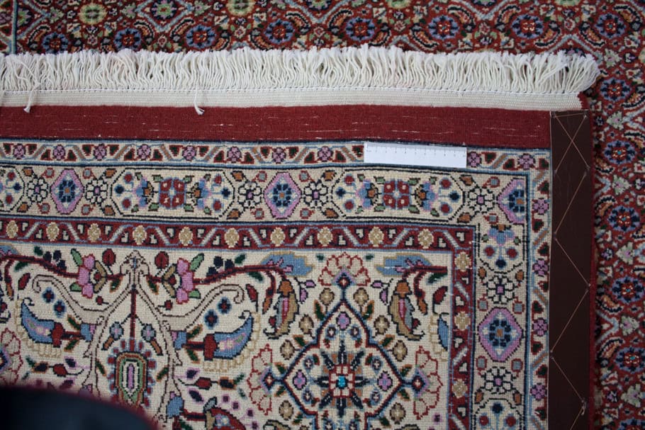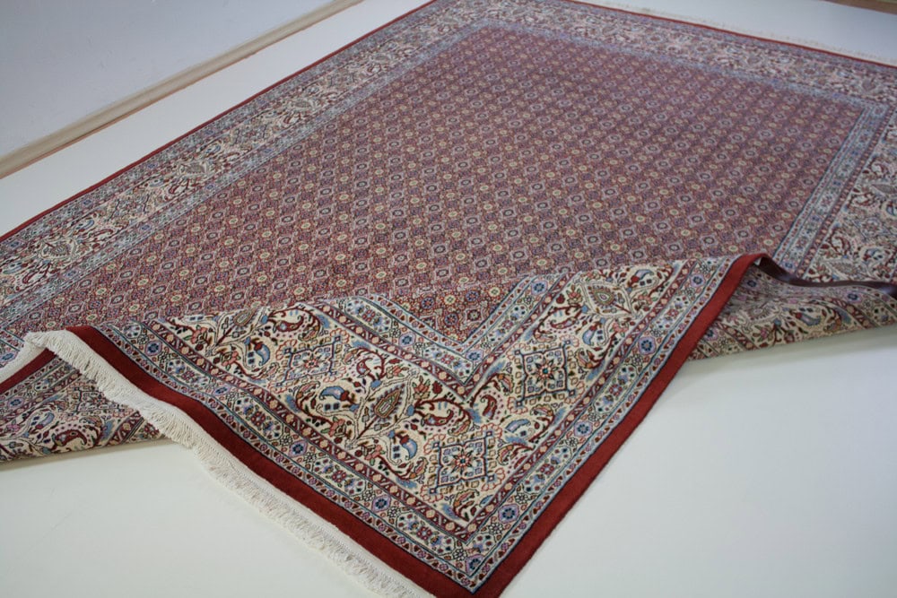 Die besten und schönsten Mescheder Teppiche werden als Moud bezeichnet. Sie zeichnen sich vorallem durch besonders feine Knüpfung, einen glatt geschorenen, dichten mittelhohen Flor sowie durch das sehr klar gezeichnete, reiche Medaillon- und Ranken-Blüten-Muster mit harmonischen Farben aus. Die Moud-Teppiche haben eine ausgesuchte, vorzügliche Knüpfwolle mit Glanz und eine feste aber biegsame Struktur. Das Grundgewebe besteht aus dünn gesponnenem Baumwollgarn. Die Knüpfungsdichte ereicht oft die 400.000 persischen Knoten pro Quadratmeter.