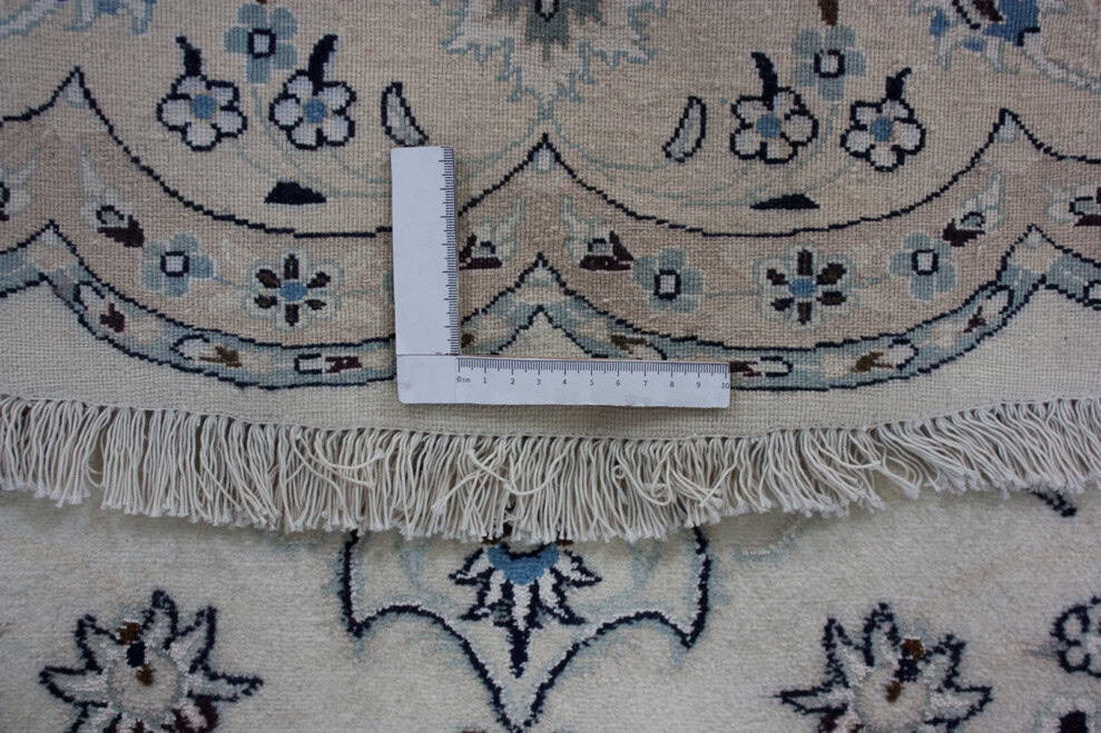 Ein besonders fein geknüpfter Typ wird in der Stadt Nain hergestellt. In seinem vorwiegend hellen Kolorit und oft auch im Muster nähert sich der Nain im Charakter den Isfahans. Die Nain-Teppiche zeigen feingegliederte Ranken-Kompositionen. mit schwungvollen großen Botah-Motiven. Zarte Medaillons mit Vasen als Ansätzen werden ebenso gern als Muster verwendet wie einfallsreiche Ranken-Blüten-Zeichnungen ohne Medaillon. Die Struktur ist mit ihrem dünnen, baumwollenem Grundgewebe und dem mäßig hohen, spiegelglatten, sehr dichten Flor außerordentlich fest. Die Nains sind kleinere Teppiche länglichen Formats, Brücken und auch sehr schöne Gebetsteppiche.