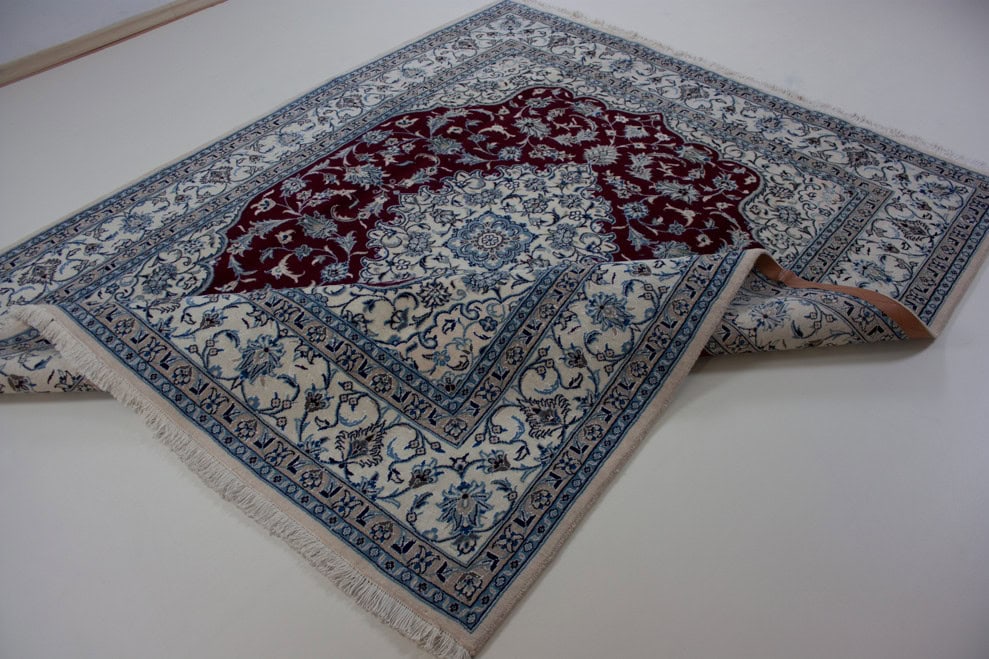 Ein besonders fein geknüpfter Typ wird in der Stadt Nain hergestellt. In seinem vorwiegend hellen Kolorit und oft auch im Muster nähert sich der Nain im Charakter den Isfahans. Die Nain-Teppiche zeigen feingegliederte Ranken-Kompositionen. mit schwungvollen großen Botah-Motiven. Zarte Medaillons mit Vasen als Ansätzen werden ebenso gern als Muster verwendet wie einfallsreiche Ranken-Blüten-Zeichnungen ohne Medaillon. Die Struktur ist mit ihrem dünnen, baumwollenem Grundgewebe und dem mäßig hohen, spiegelglatten, sehr dichten Flor außerordentlich fest. Die Nains sind kleinere Teppiche länglichen Formats, Brücken und auch sehr schöne Gebetsteppiche.
