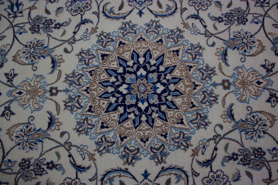 Ein besonders fein geknüpfter Typ wird in der Stadt Nain hergestellt. In seinem vorwiegend hellen Kolorit und oft auch im Muster nähert sich der Nain im Charakter den Isfahans. Die Nain-Teppiche zeigen feingegliederte Ranken-Kompositionen. mit schwungvollen großen Botah-Motiven. Zarte Medaillons mit Vasen als Ansätzen werden ebenso gern als Muster verwendet wie einfallsreiche Ranken-Blüten-Zeichnungen ohne Medaillon. Die Struktur ist mit ihrem dünnen, baumwollenem Grundgewebe und dem mäßig hohen, spiegelglatten, sehr dichten Flor außerordentlich fest. Die Nains sind kleinere Teppiche länglichen Formats, Brücken und auch sehr schöne Gebetsteppiche mit einer durchschnittlichen Knüpfungsdichte von 320.000 persischen Knoten pro Quadratmeter.