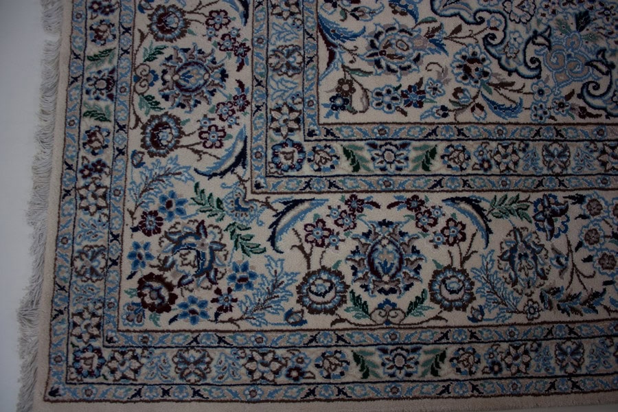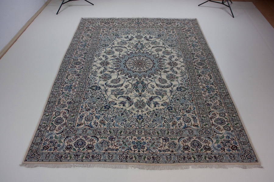 Ein besonders fein geknüpfter Typ wird in der Stadt Nain hergestellt. In seinem vorwiegend hellen Kolorit und oft auch im Muster nähert sich der Nain im Charakter den Isfahans. Die Nain-Teppiche zeigen feingegliederte Ranken-Kompositionen. mit schwungvollen großen Botah-Motiven. Zarte Medaillons mit Vasen als Ansätzen werden ebenso gern als Muster verwendet wie einfallsreiche Ranken-Blüten-Zeichnungen ohne Medaillon. Die Struktur ist mit ihrem dünnen, baumwollenem Grundgewebe und dem mäßig hohen, spiegelglatten, sehr dichten Flor außerordentlich fest. Die Nains sind kleinere Teppiche länglichen Formats, Brücken und auch sehr schöne Gebetsteppiche.
