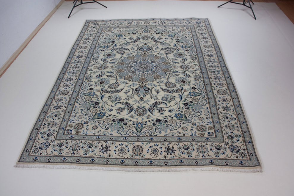 Ein besonders fein geknüpfter Typ wird in der Stadt Nain hergestellt. In seinem vorwiegend hellen Kolorit und oft auch im Muster nähert sich der Nain im Charakter den Isfahans. Die Nain-Teppiche zeigen feingegliederte Ranken-Kompositionen. mit schwungvollen großen Botah-Motiven. Zarte Medaillons mit Vasen als Ansätzen werden ebenso gern als Muster verwendet wie einfallsreiche Ranken-Blüten-Zeichnungen ohne Medaillon. Die Struktur ist mit ihrem dünnen, baumwollenem Grundgewebe und dem mäßig hohen, spiegelglatten, sehr dichten Flor außerordentlich fest. Die Nains sind kleinere Teppiche länglichen Formats, Brücken und auch sehr schöne Gebetsteppiche.