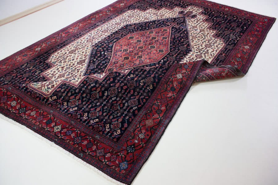 Diese Teppiche werden in der Stadt Sanandaj, die in der Provinz Kurdistan in West-Persien liegt, gewebt. Das Muster besteht aus Rauten, mir-e buteh oder Herati und die Teppiche werden von roten und dunkelblauen Farbtönen dominiert. Die Wolle ist durchweg von sehr hoher Qualität. Nach Senneh (ältere Bezeichnung für Sanandaj) wurde der persische Knoten benannt.