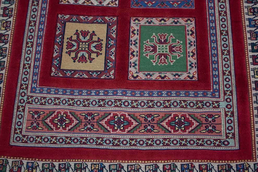 * Verarbeitung Relief, Nadelarbeit und hochwertige Knüpfarbeit.