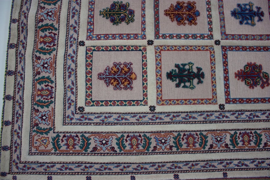 * Verarbeitung Relief, Nadelarbeit und hochwertige Knüpfarbeit.